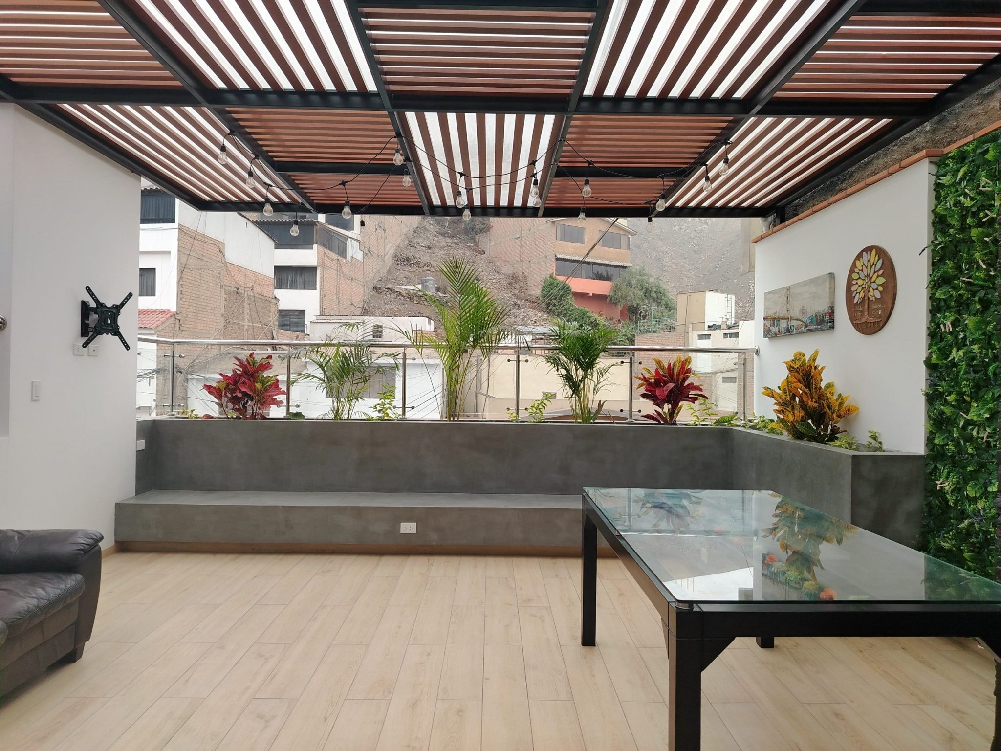 TERRA LUXURY fue un proyecto de acondicionamiento de una vivienda unifamiliar ubicada en el distrito de Santiago de Surco combinó una arquitectura moderna con acabados en madera natural que aportaron calidez y carácter a cada espacio. Los detalles en puertas, vigas expuestas en el porche de ingreso y mobiliarios integrados crearon un ambiente acogedor y sofisticado un punto a resaltar por la familia, ya que buscaban un hogar con estilo, confort y una conexión armónica con la naturaleza.