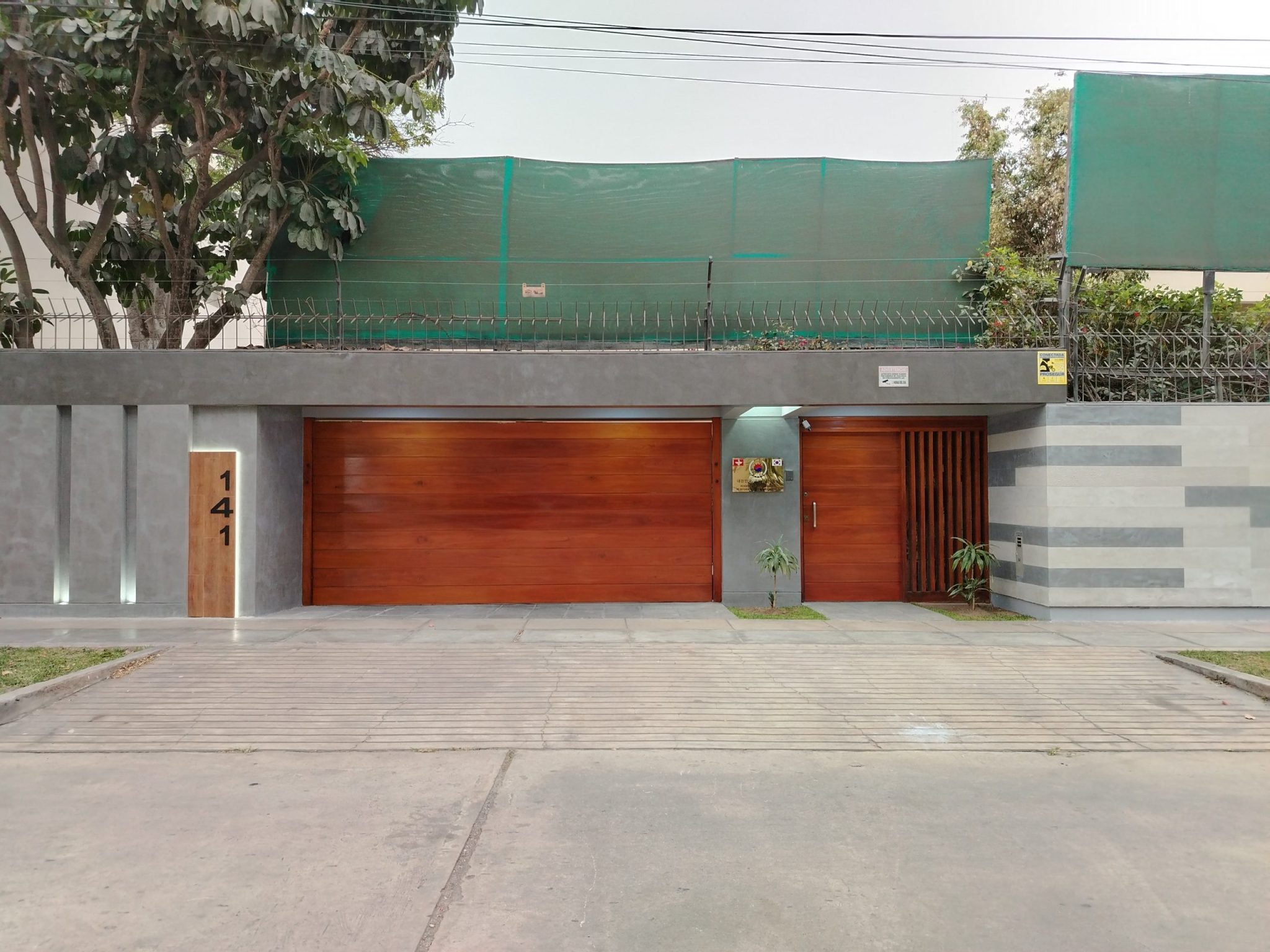 La idea principal de este PROYECTO DE REMODELACIÓN consistió en modernizar el pórtico de la Residencia de Agregaduría de Defensa de la Embajada de la República de Corea, para lo cual se optó por incorporar dentro del diseño la escala en colores grises, utilizando el microcemento como base principal, manejamos la técnica de desencofrado tipo tablonado texturado y el juego de luces gracias a la utilización de tiras leds y spots en piso para darle un toque de modernidad e iluminación.